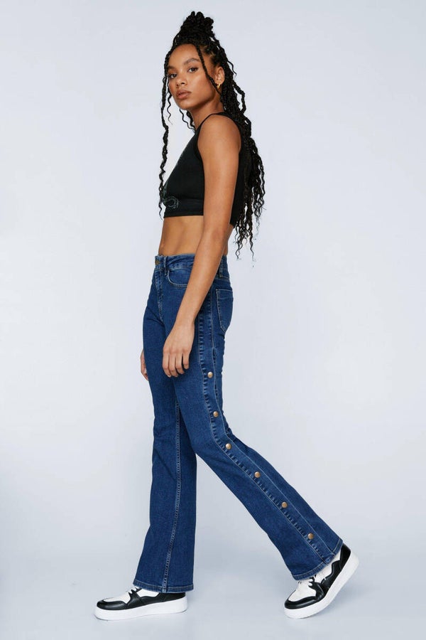 Nasty Gal Popper Side Stretch Denim Flare Pants size 6 Original Price $79