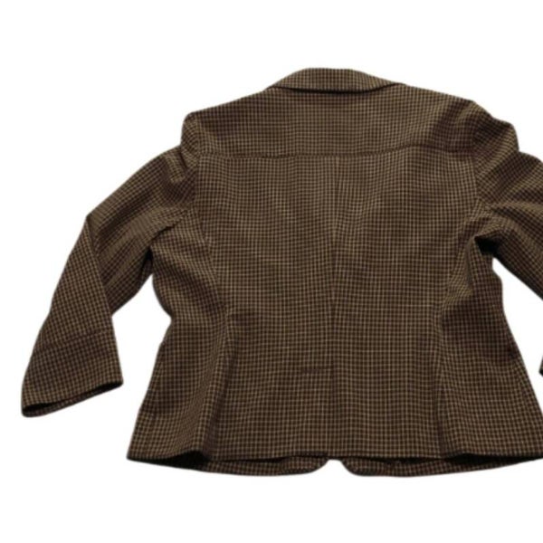 48% Polyester, 48% Viscose, 3% Elastine Lining 100% Polyester Runs Smaller, like size 6 Bust 32", Shoulders 16", Sleeves Length 20" Jacket length 22 1/2"