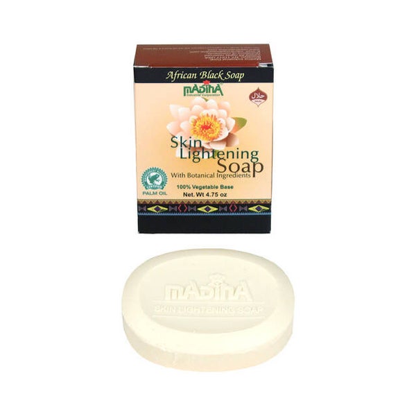 Madina: Skin Lightening Soap is formulated with natural ingredients known for their skin-brightening properties. This soap is designed to gently lighten the appearance of dark spots and even out skin tone, providing a radiant and luminous complexion. Enriched with vitamins and antioxidants, it nourishes the skin while reducing the visibility of hyperpigmentation and discoloration. Suitable for all skin types, this Skin Lightening Soap promotes a healthy, glowing skin tone without the use of harsh chemicals.